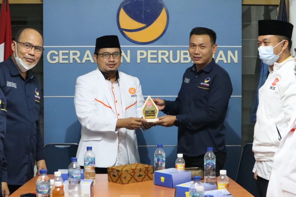 Jajaran pengurus Partai NasDem Kota Yogyakarta dan Partai Keadilan Sejahtera menjalin silaturahmi politik di Kantor NasDem, Jl. Soka, Baciro, Gondokusuman, Kota Yogyakarta, Jum’at (11/6) malam. Silaturahmi politik itu membahas peluang koalisi NasDem-PKS dalam menyiapkan Pilkada Kota Yogyakarta tahun 2024.